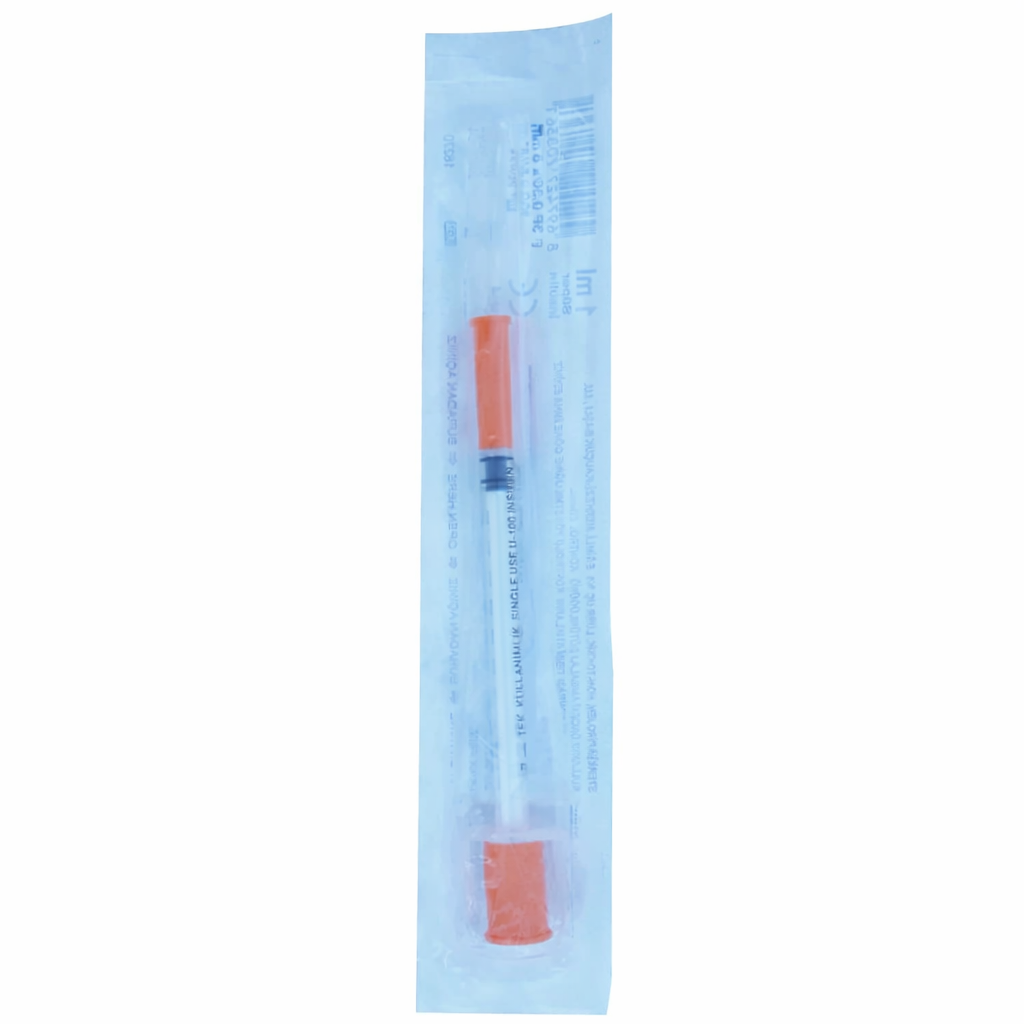 Ayset Enjektör İnsülin Süper 1 ml. Günlük insülin tedavisi ve hassas deri altı uygulamaları için tasarlanmış tekli steril çözüm; 1 ml (100 Ünite) kapasiteli gövdesi üzerindeki net ölçeklendirme ve güvenli muhafaza sağlayan turuncu kapak yapısıyla yüksek hijyen sunan steril, tek kullanımlık medikal enjektör.