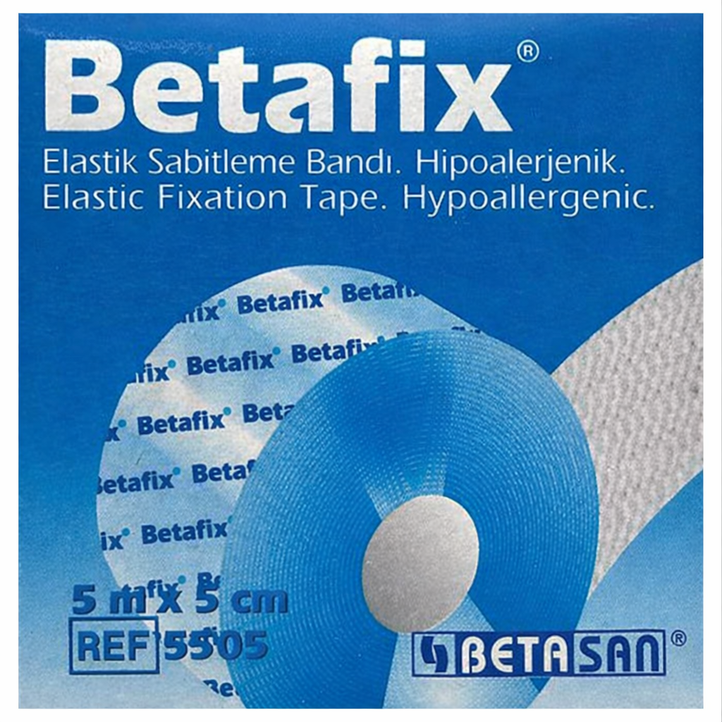 Betafix Elastik Sabitleme Bandı 5 m x 5 cm. Hareketli bölgelerdeki pansumanları güvenle sabitlemek için tasarlanmış, tek yönlü esneme özelliğine sahip medikal bant; hipoalerjenik yapısıyla cildi koruyan, hava geçiren dokusuyla konfor sağlayan ve 5 metrelik uzunluğuyla ekonomik kullanım sunan profesyonel sabitleme flasteri.