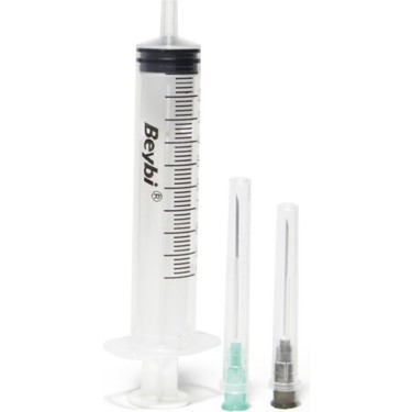 Beybi Enjektör 10 cc 3 Parça Yeşil. Bireysel kullanımlar ve geniş hacimli sıvı transferleri için ideal 10 cc kapasite; standart 21G (yeşil) iğne ucu ve sızdırmaz kauçuk contasıyla (3 parça) pürüzsüz işlem sağlayan, steril, tek kullanımlık yerli üretim profesyonel medikal sarf malzemesi.