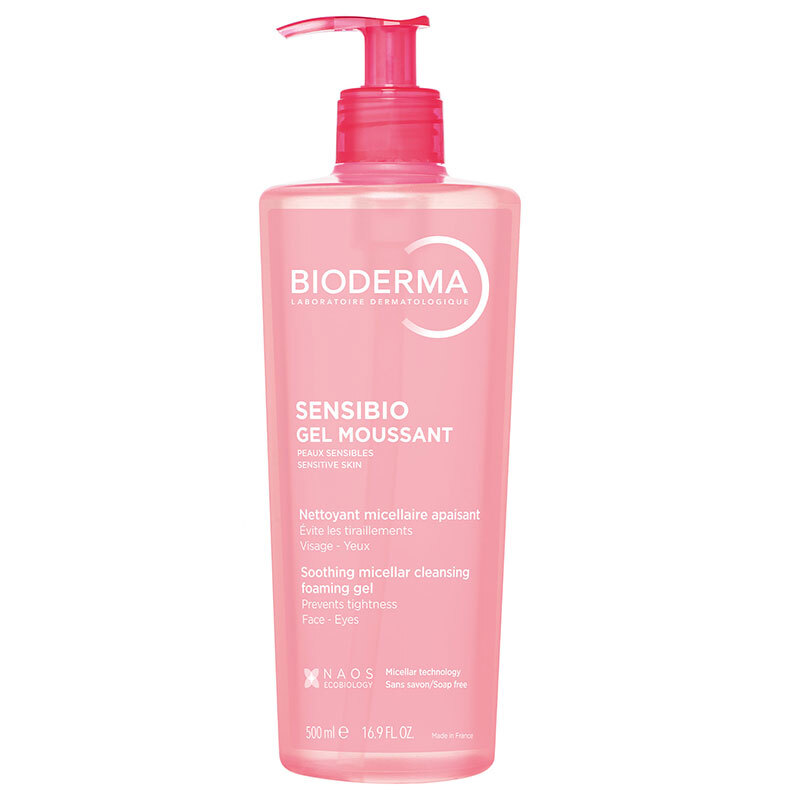 Bioderma Sensibio Foaming Gel 500 ml. Hassas ve nem kaybı yaşayan ciltler için geliştirilmiş; cildi nazikçe temizleyen, makyajdan arındıran, sabun içermeyen ve yıkama sonrası cildi nemlendiren yatıştırıcı temizleme jeli.