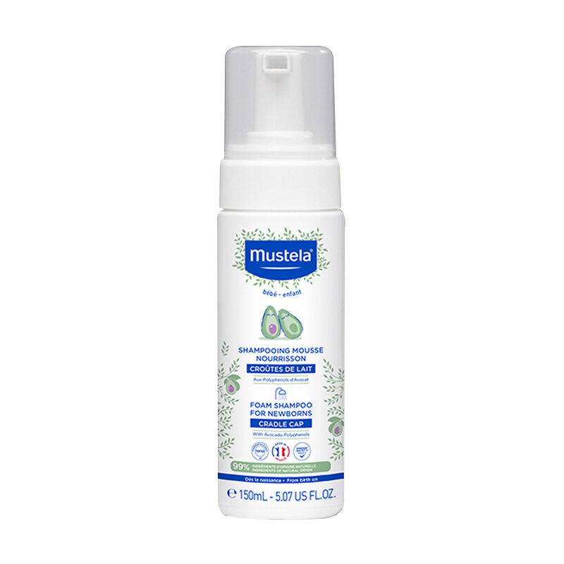 Mustela Yenidoğan Köpük Şampuan 150 ml. Yenidoğan bebeklerin saçlı derisinde oluşan pullanmaları (konak) önlemeye ve temizlemeye yardımcı; Avokado Perseose ve %99 doğal kökenli içeriğiyle saç derisinin dengesini koruyan, göz yakmayan pratik köpük şampuan.