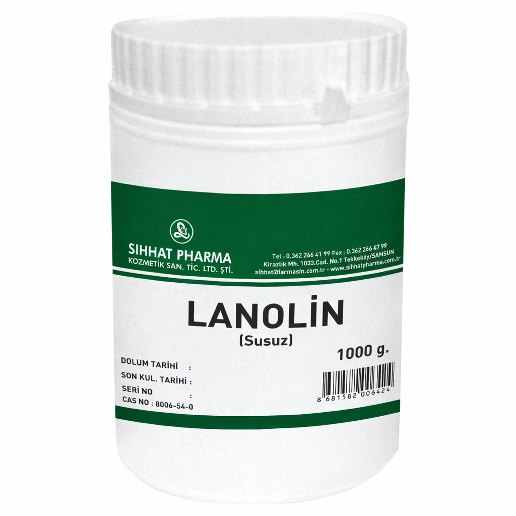 Sıhhat Lanolin Susuz. Eczacılık ve kozmetik formülasyonlarında temel hammadde olarak kullanılan yüksek saflıkta susuz lanolin; cildi derinlemesine nemlendiren ve dış etkenlere karşı koruyan doğal yapısı, diğer içeriklerle mükemmel uyumu ve 1 kg'lık avantajlı ambalajıyla profesyonel laboratuvar kullanımları için üretilmiş kaliteli galenik hammadde.