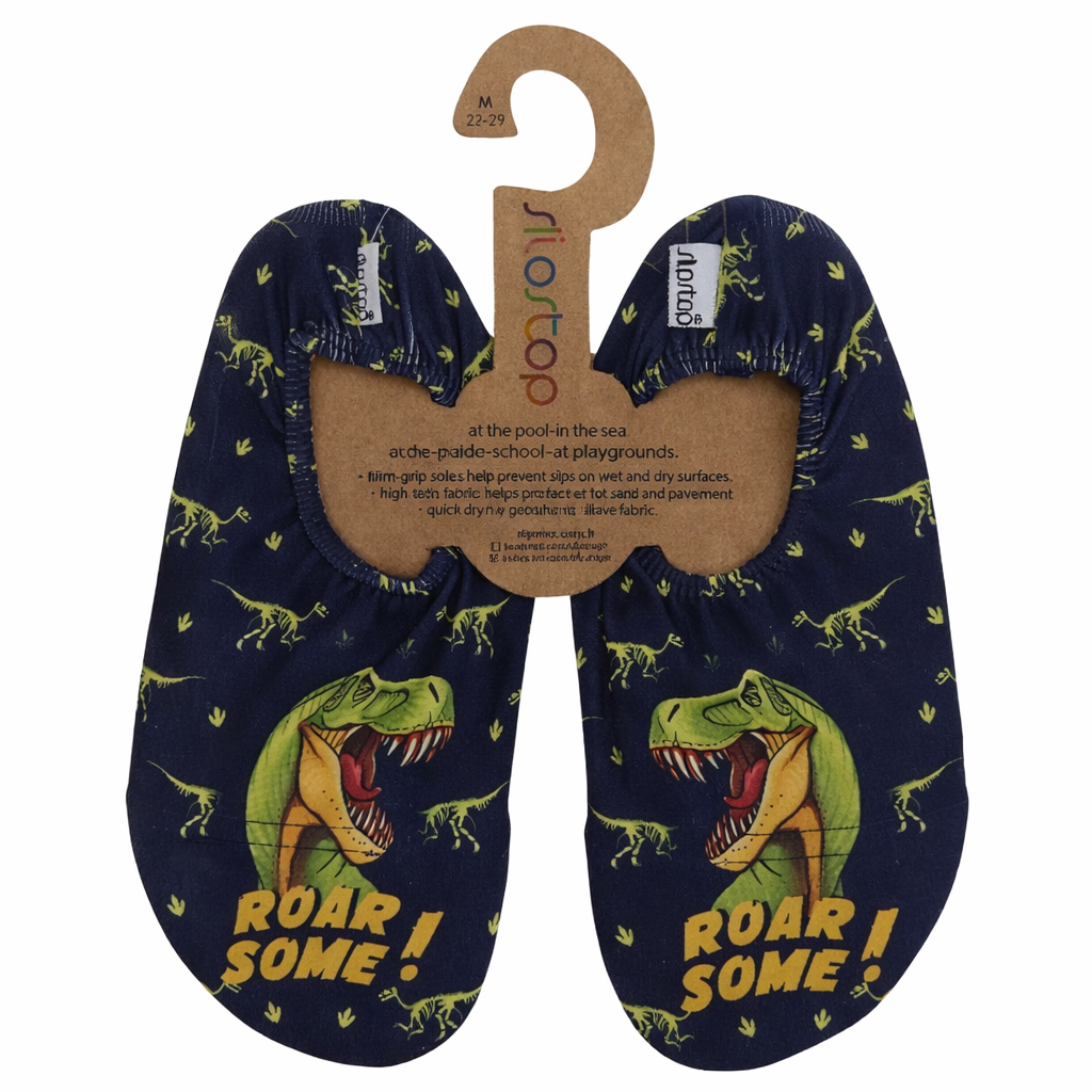 Slip Stop Matrix Junior Deniz Ayakkabısı Medium (27-29). Çocuklar için özel olarak tasarlanmış; kaymaz tabanıyla ıslak ve kuru tüm zeminlerde üstün yer tutuşu sağlayan, eğlenceli dinozor (Matrix) desenli, hızlı kuruyan ve nefes alan esnek kumaşıyla kumun sıcaklığından koruyan konforlu deniz ayakkabısı.