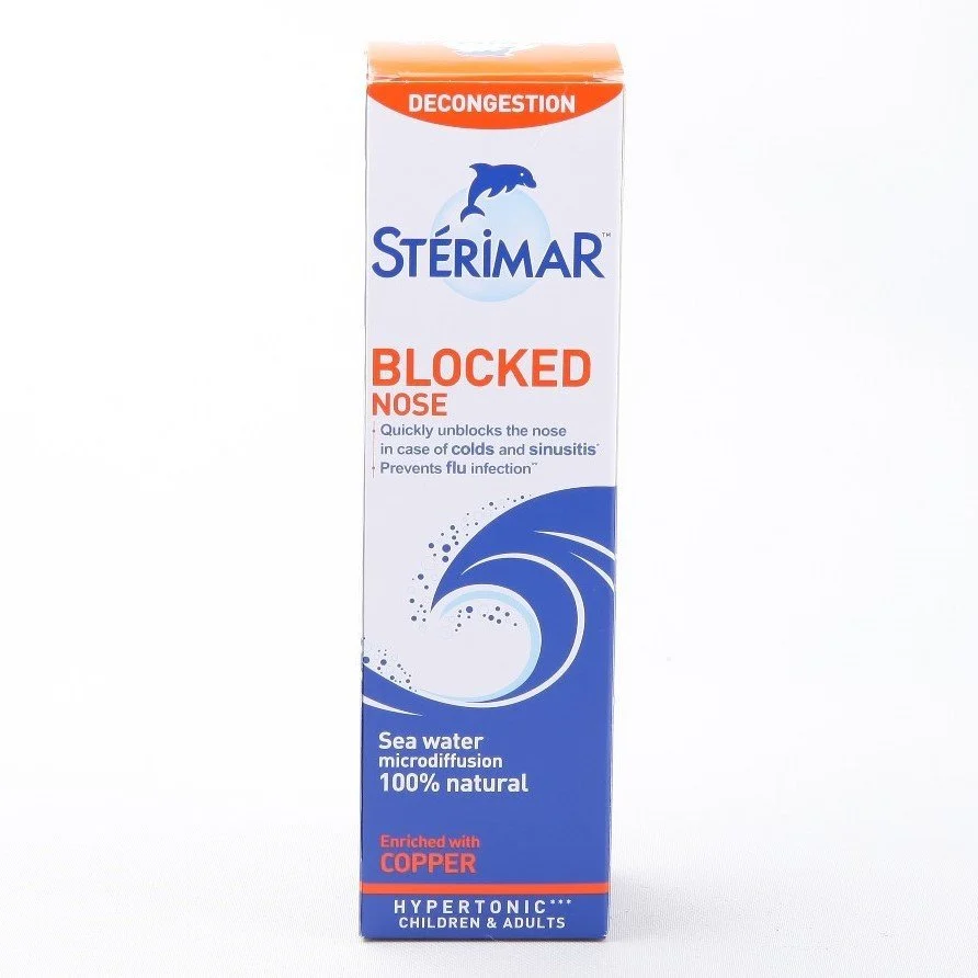 Sterimar Burun Spreyi Blocked Nose 100 ml. İnatçı burun tıkanıklığını gidermeye ve nefes yollarını rahatlatmaya yardımcı; bakır minerali ile zenginleştirilmiş %100 doğal hipertonik deniz suyu içeren, ilaç ve koruyucu madde barındırmayan etkili burun spreyi.