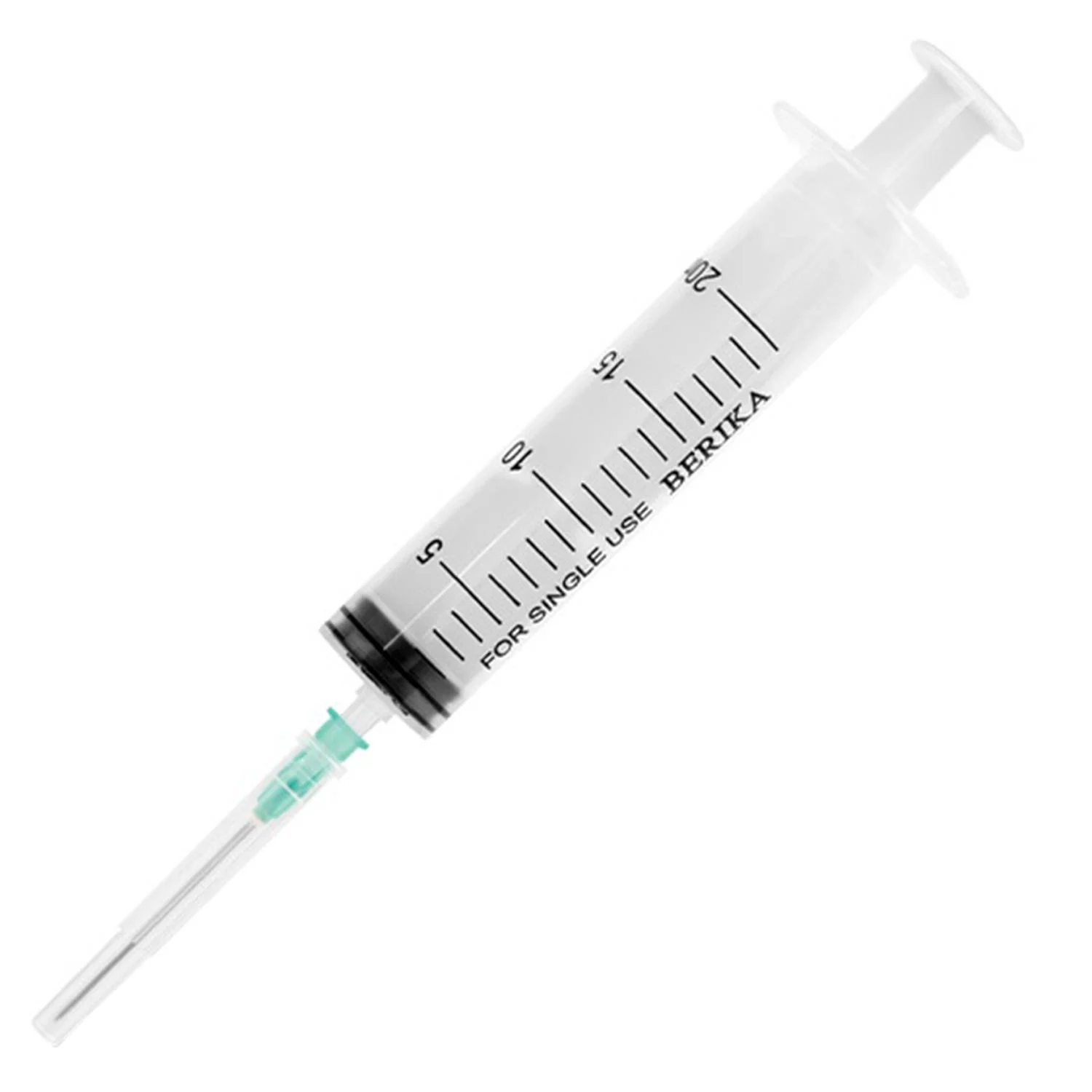 Berika Enjektör 20 cc Yeşil. Bireysel kullanımlar, evde bakım süreçleri ve spesifik klinik uygulamaları için ideal 20 cc kapasite; 21G (yeşil) iğne ucu ve sızdırmaz kauçuk contasıyla pürüzsüz ve güvenli sıvı transferi sağlayan, steril, tek kullanımlık yerli üretim profesyonel medikal sarf malzemesi.