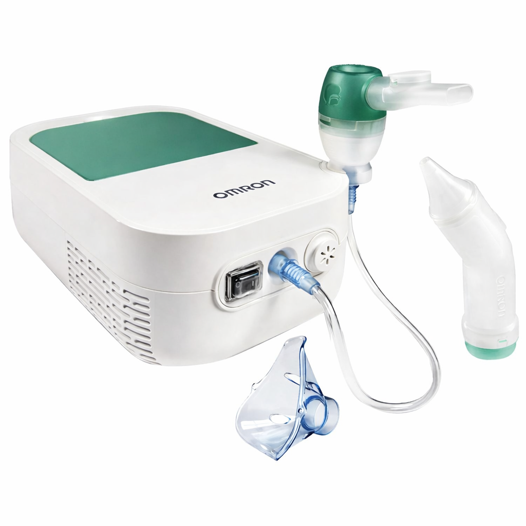 Omron DuoBaby Nebulizatör. Bebeklerin hem burun tıkanıklığını gideren hem de solunum yolu tedavisini gerçekleştiren akıllı sağlık istasyonu; aspiratör özelliğiyle enfeksiyon riskini azaltan temizlik sunan, çift başlığıyla ilacı hedef bölgeye (burun/boğaz veya akciğerler) ulaştıran ve profesyonel kalitesiyle ebeveynlere güven veren çok yönlü medikal cihaz.